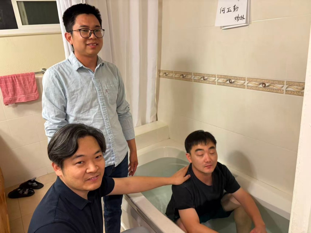 涂炎弟兄,何玉勤姊妹蒙神救赎,信而受浸。罪被除去,免于沉沦,蒙了重生,得着神永远的生命,成了神的儿女。哈利路亚,荣耀归主!